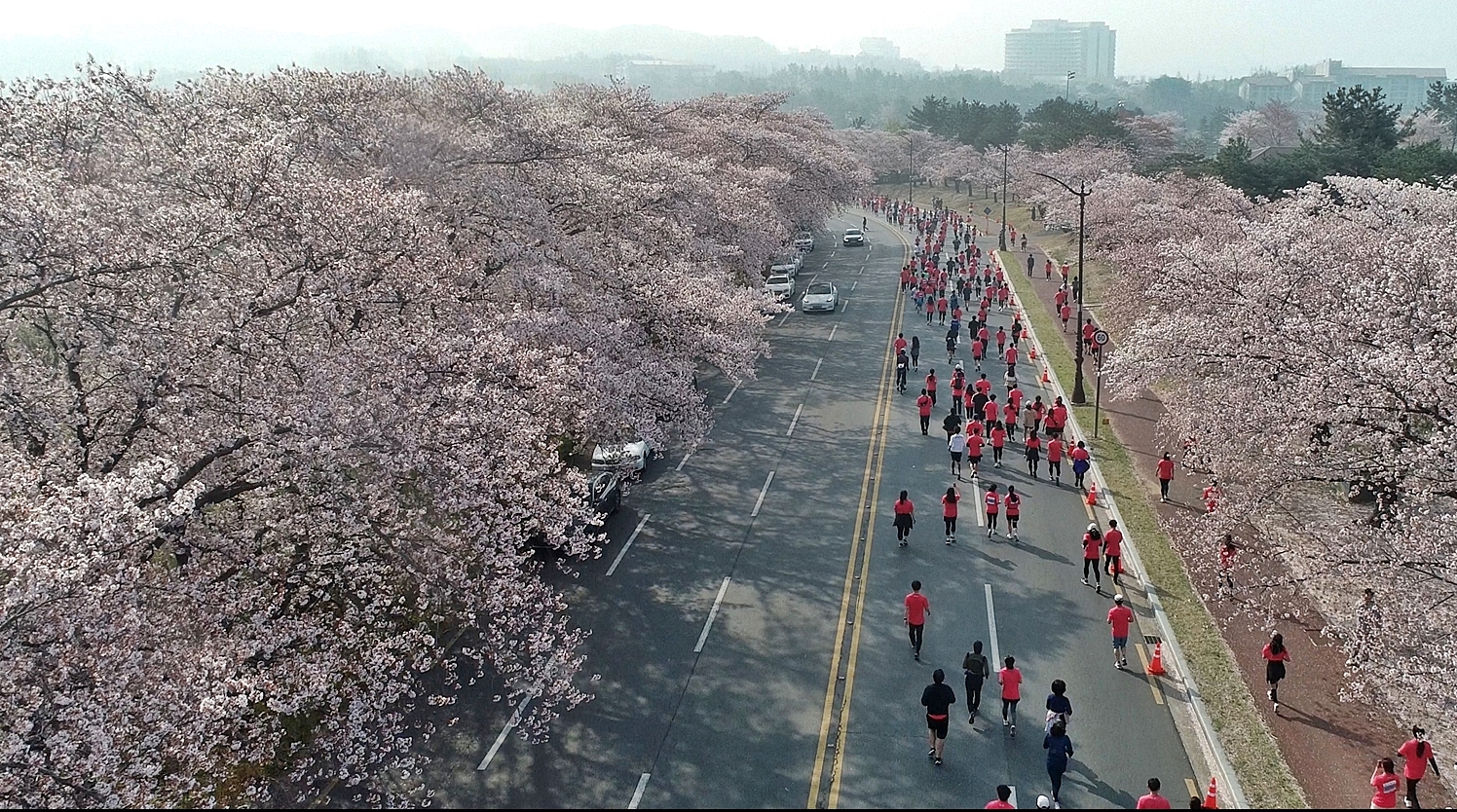 도심 속 녹지공간인 황성공원은 봄이면 벚꽃으로 뒤덮여요. 대회 중간에 잠시 숨을 고르며 벚꽃의 아름다움을 감상하기 좋은 곳이에요.