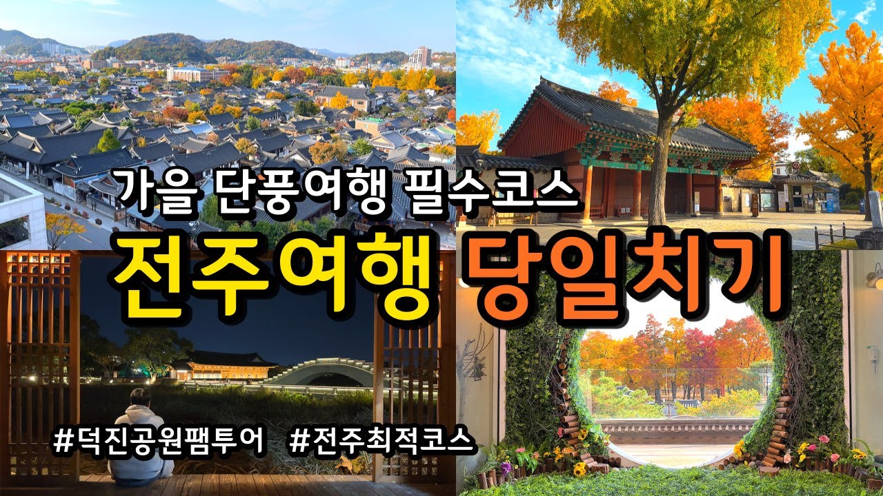 전주, 그 이름만으로도 전통과 현대의 매력이 교차하는 도시입니다. 전주 한옥마을, 맛집 탐방, 그리고 전주만의 문화를 즐기기 좋은 당일치기 여행지로 손꼽히죠. 전주는 다채로운 문화유산과 맛있는 음식을 동시에 경험할 수 있는 곳으로, 바쁜 일상 속에서 짧은 시간 동안 풍성한 여행을 할 수 있는 최적의 장소예요.